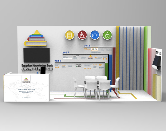 We have participated in 2016,2017,2018 and 2019 with booth designs and experience for The Egyptian Knowledge Bank and more..